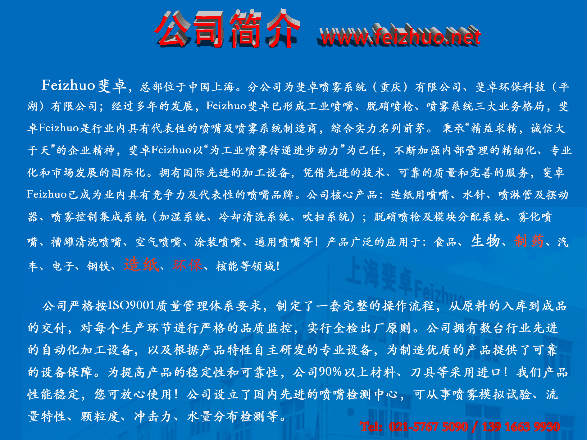 脫硝噴槍公司,上海斐卓噴霧系統(tǒng)公司,集脫硝噴槍的研發(fā)、生產(chǎn)、銷售為一體的噴霧系統(tǒng)公司!公司專業(yè)替代進(jìn)口脫硝噴槍;擁有自己的噴霧檢測(cè)實(shí)驗(yàn)裝備和實(shí)驗(yàn)室,能夠用專業(yè)數(shù)據(jù)結(jié)合客戶現(xiàn)場(chǎng)工況,選擇合適的脫硝噴槍,能夠真正的解決客戶脫硝效率不高,脫硝噴槍不耐腐蝕等各種選型不當(dāng)帶來(lái)的問(wèn)題。